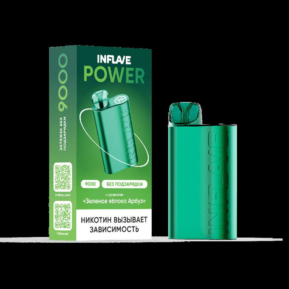 Электронная сигарета INFLAVE POWER 9000 затяжек Зеленое Яблоко Арбуз - купить в Липецке